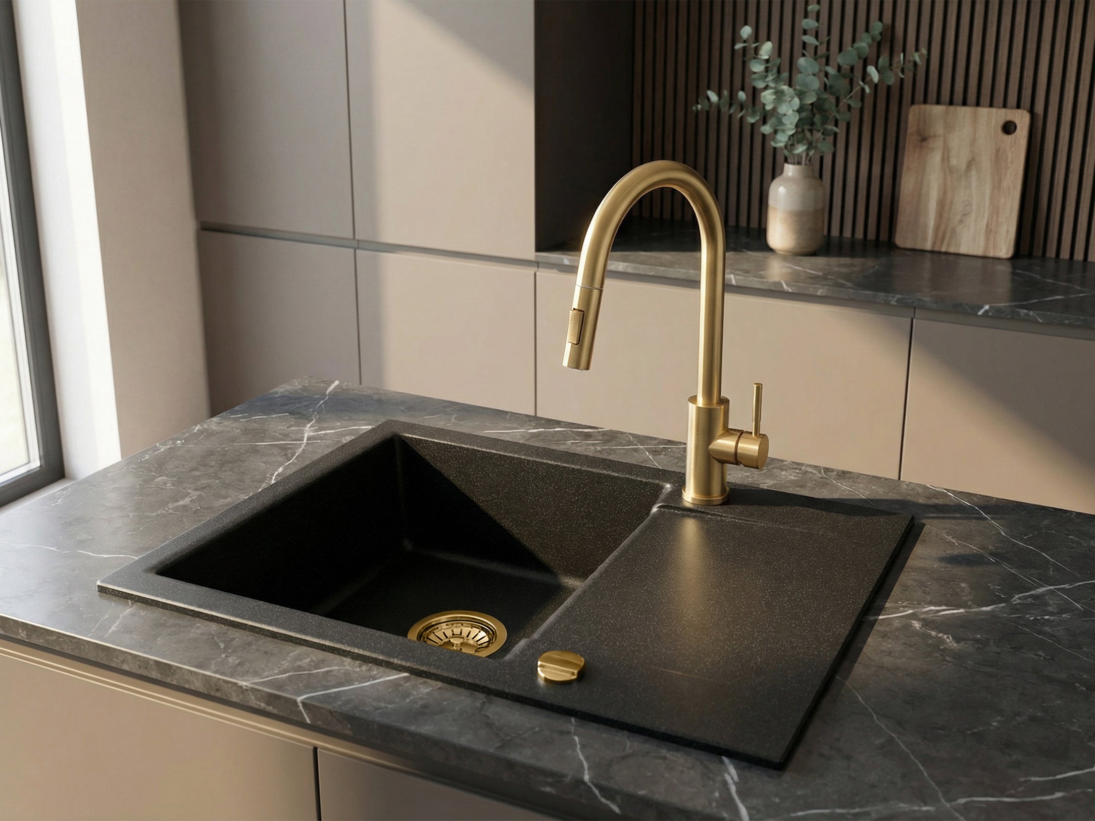 Zlewozmywak granitowypowstaje z nowoczesnej mieszanki materiałów, która łączy naturalne właściwości granitu z zaawansowaną technologią produkcji. Nasze zlewy składają się w 80% z kruszywa granitowego oraz w 20% z dedykowanych żywic. Takie połączenie zapewnia wysoką wytrzymałość, odporność na zarysowania i temperaturę, a jednocześnie pozwala uzyskać idealny kształt i gładką powierzchnię.